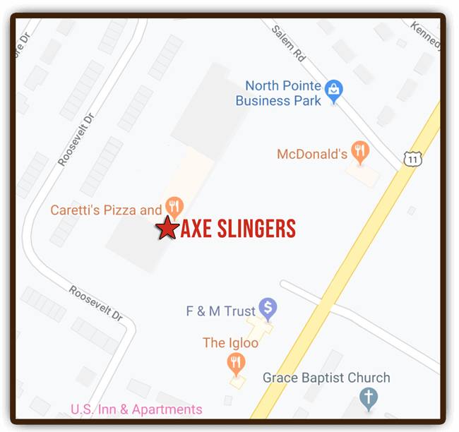 Test your aim with the hottest new trend! Indoor axe throwing at Axe Slingers, Chambersburg’s premier axe throwing destination. With 2 Western themed axe throwing lanes and custom head to head games, Axe Slingers is sure to be a fun, thrilling, and memorable experience for all.